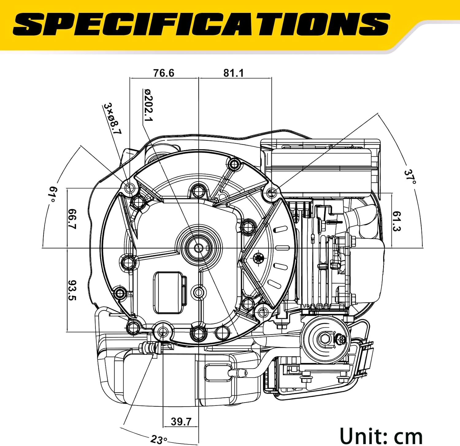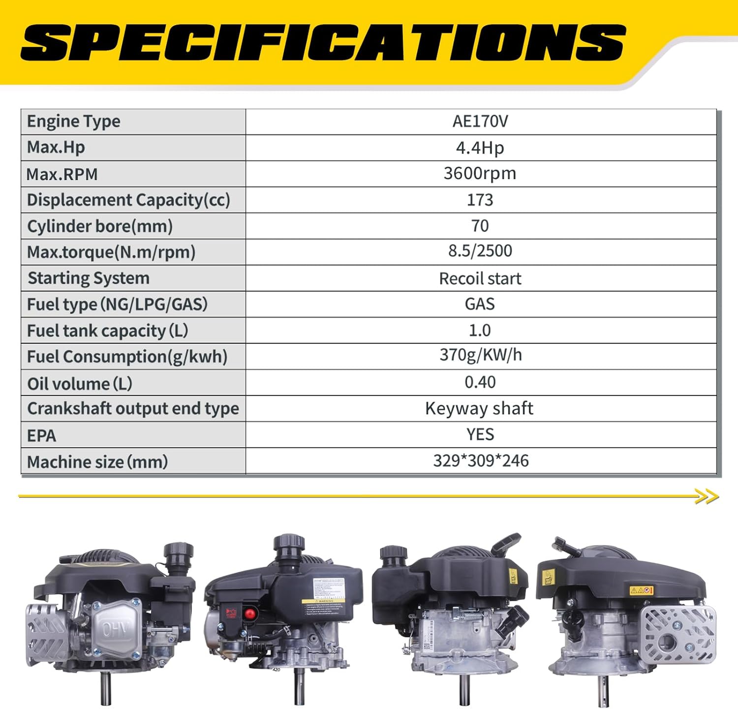 Motor de gasolina Aceup Energy de eje vertical, 4,4 HP, 173 cc, 4 tiempos, OHV, para cortacésped, compatible con EPA