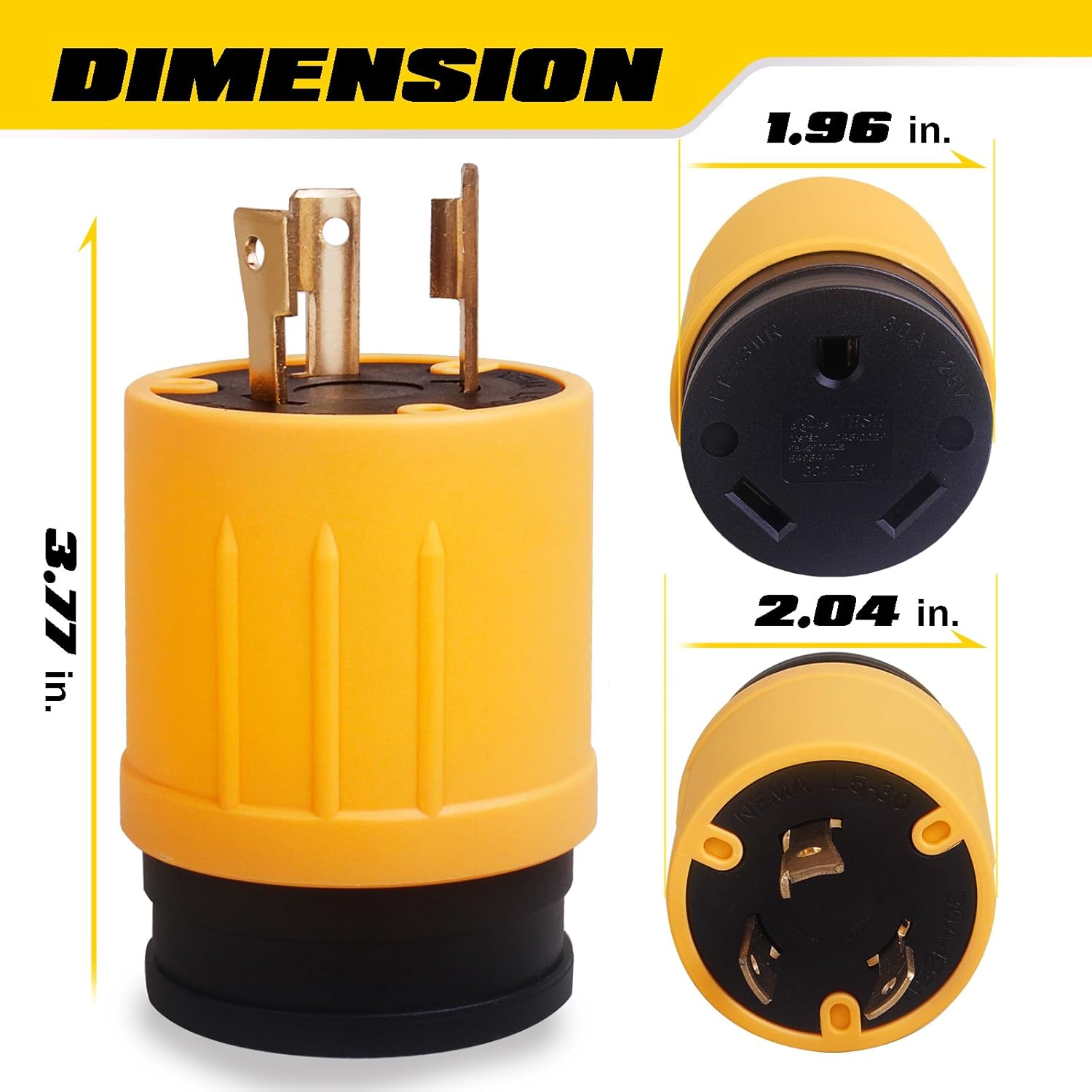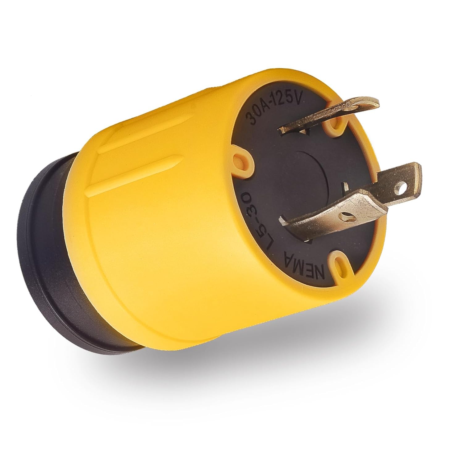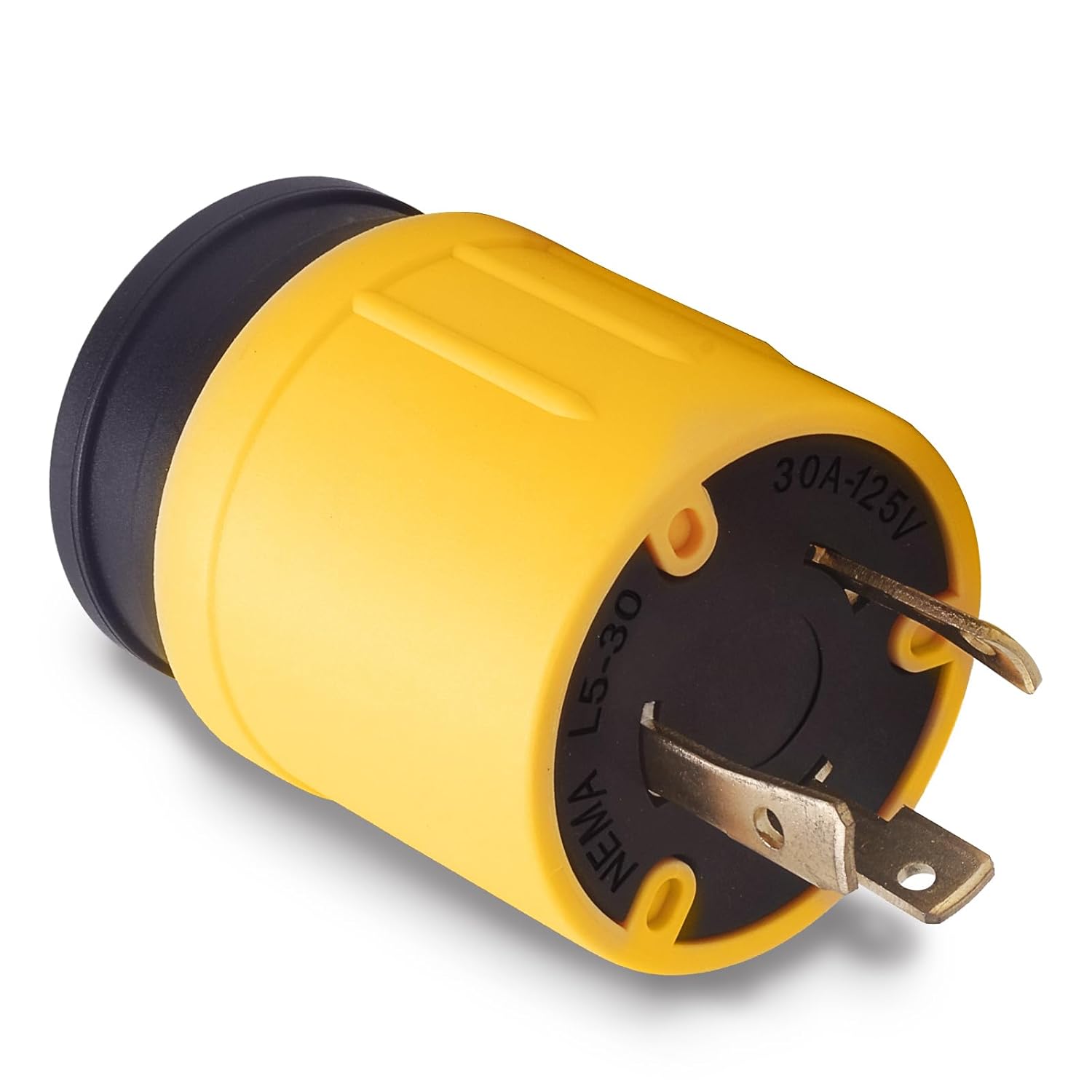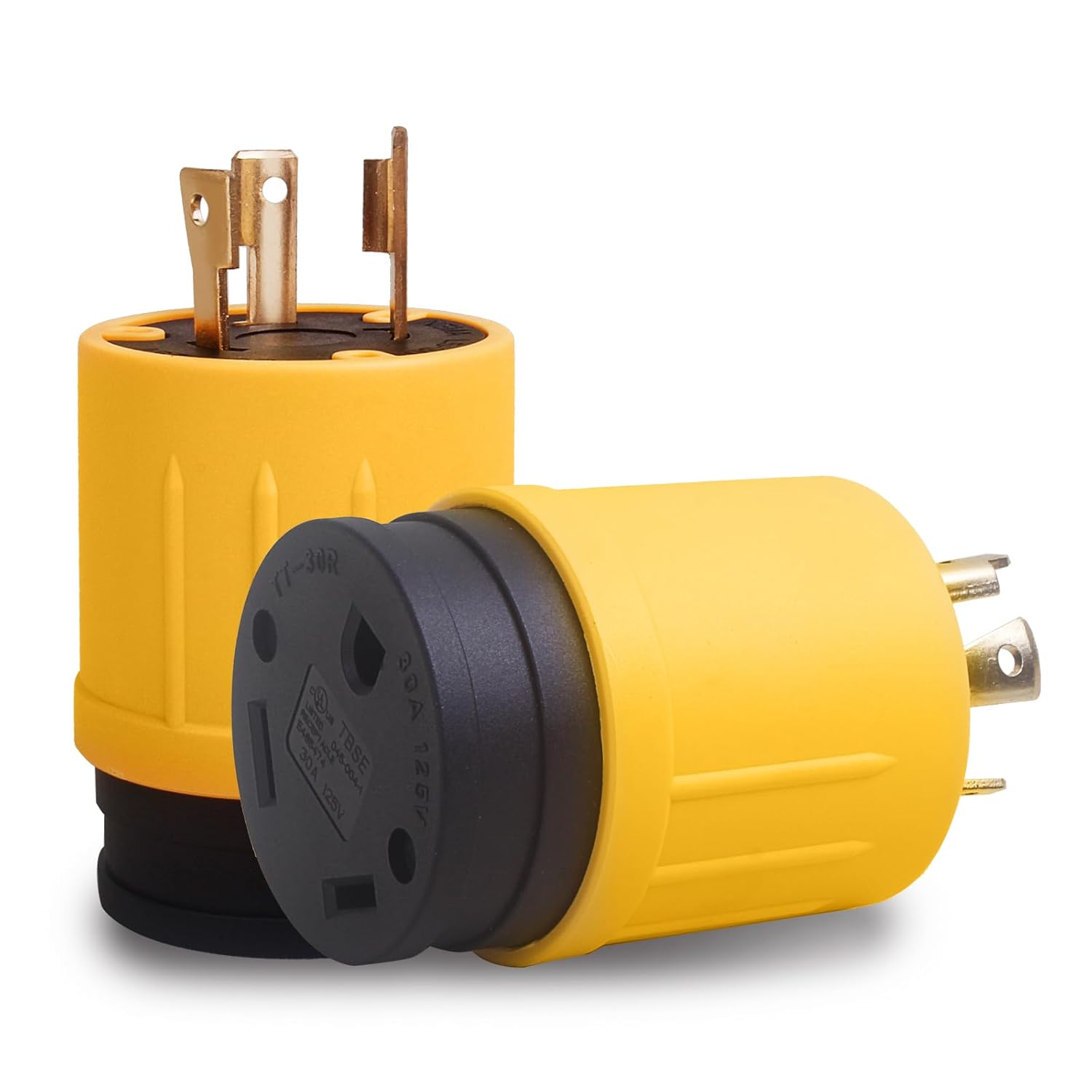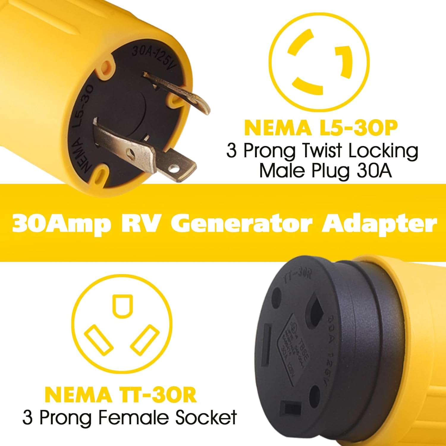 Adaptador para RV, conector macho NEMA L5-30P de 3 clavijas con cierre giratorio de 30 A a toma de corriente hembra TT-30R de 30 A, salida de 120 V, adaptador de corriente para generador