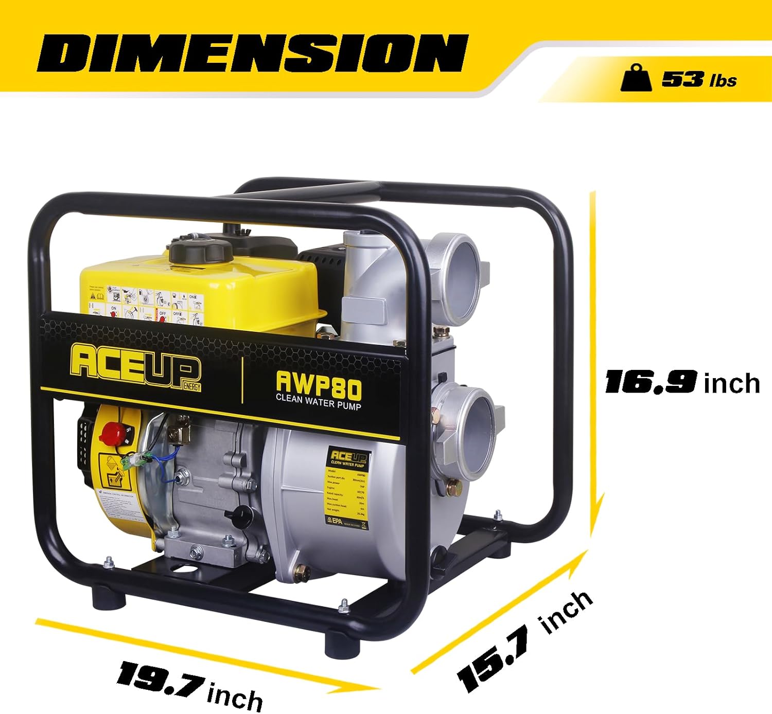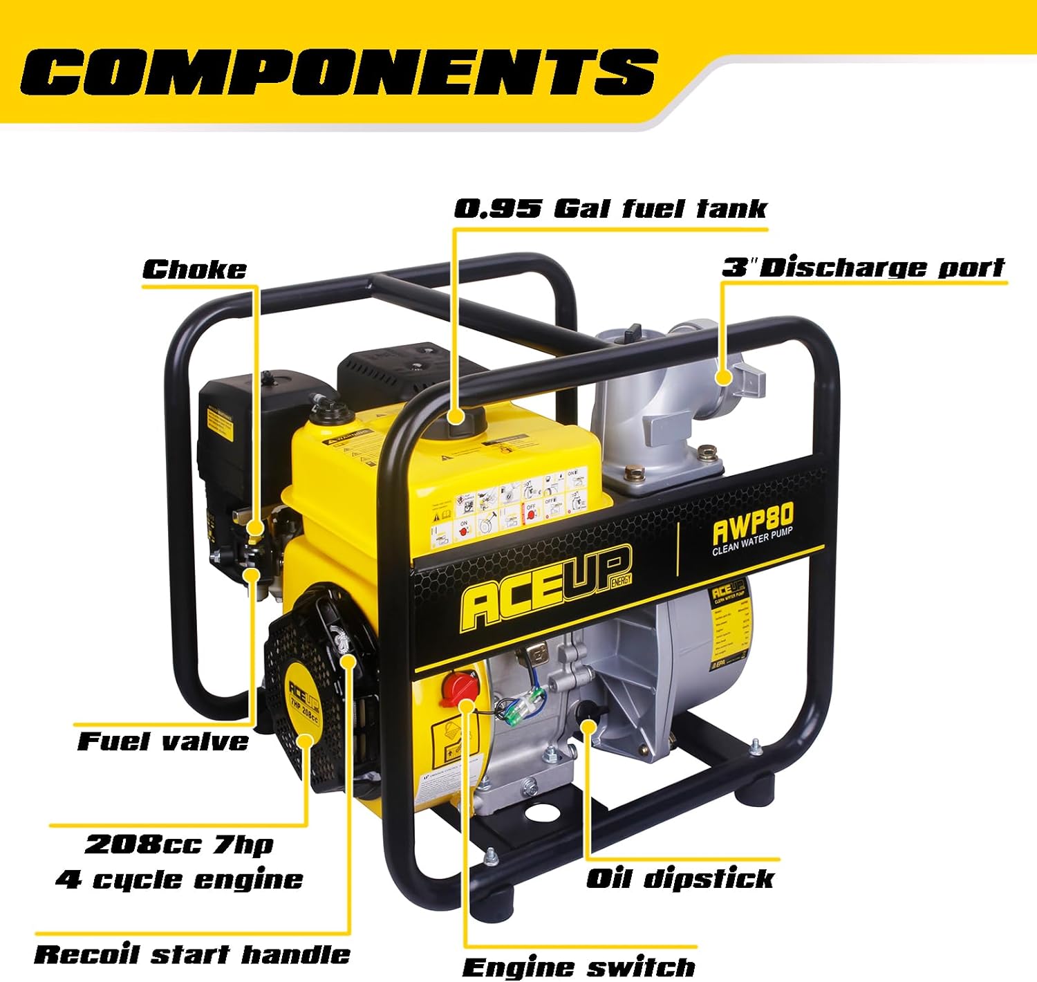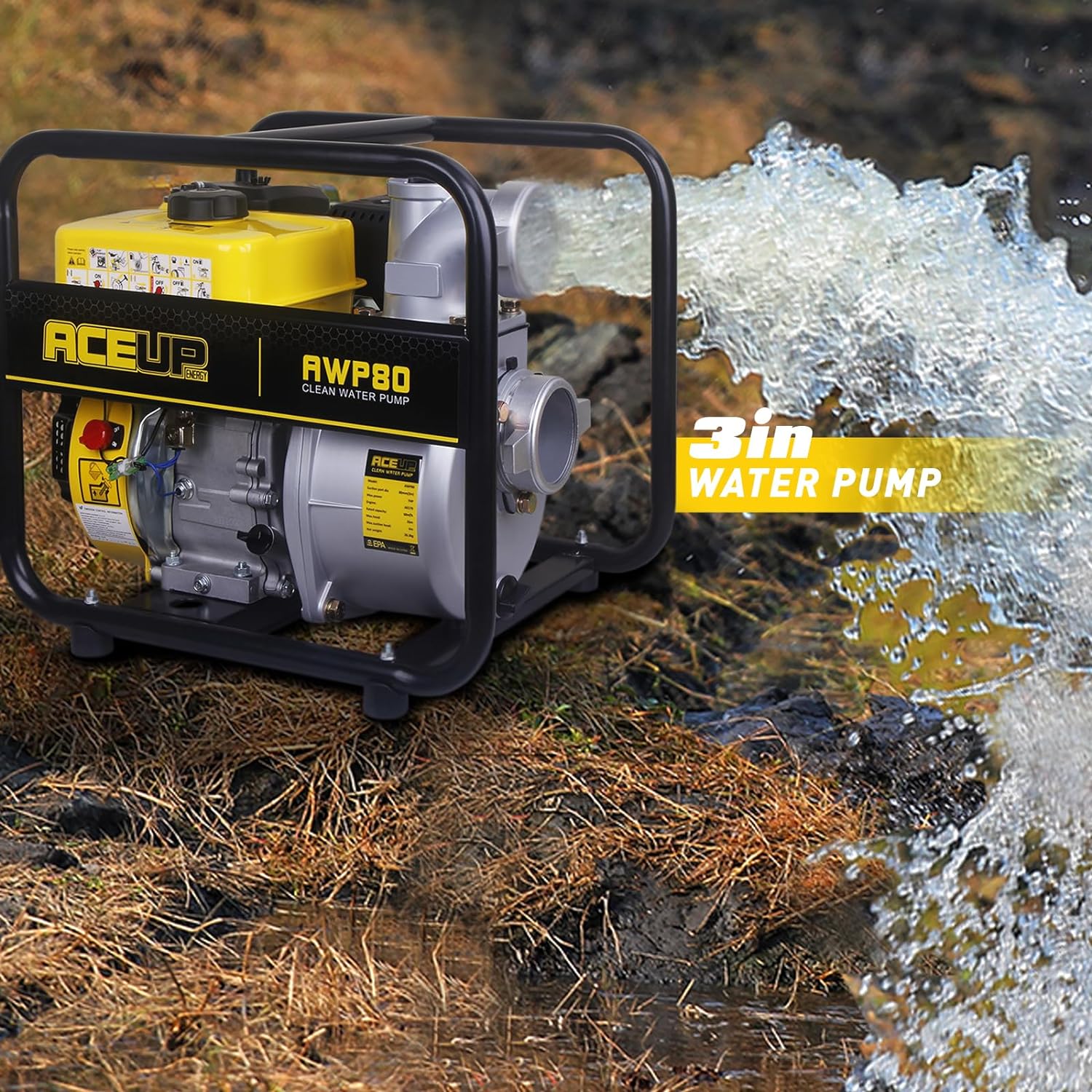 Aceup Energy 3 In. 208cc Portable Water Pump | Portable Irrigation Pump-265 GPM 7HP